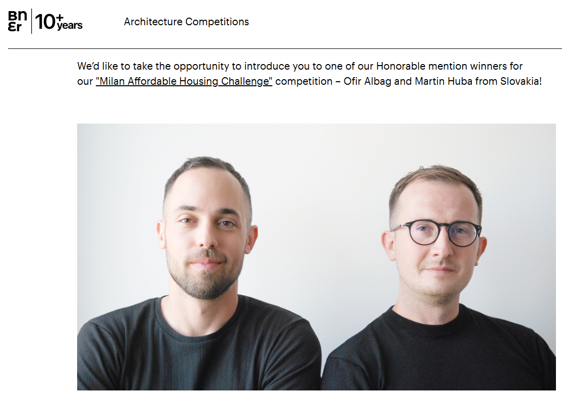 Architecture Competition Milan Affordable Housing Challenge Honorable mention winners – Ofir Albag and Martin Huba 07/2023